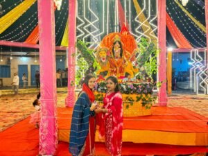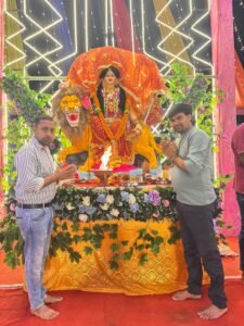 सार्वजनिक नवदुर्गा उत्सव समिति के अध्यक्ष राजेंद्र मिस्त्री व उनकी टीम के द्वारा इस बार पांडाल को दुल्हन की तरह सजावट की गई चारों ओर रंग बिरंगी रंगीन लाइटों से सजाकर तैयार किया गया। मां अम्बे का दरबार चारों ओर से फूलों से सजाकर सबको अपनी ओर आकृषित कर मनमोहित कर रहा है।पांडाल की सुसज्जित व्यवस्था देख कर सभी नगरवासियों ने प्रशंसा व्यक्त की है। मां अम्बे के दरबार में नवरात्रि के तीसरे दिन प्रजापत परिवार के द्वारा अपने बच्चों की मन्नत उतार कर महाआरती और प्रसादी के लाभार्थी अंकित भरतलाल प्रजापत व भावेश प्रजापत रहे।