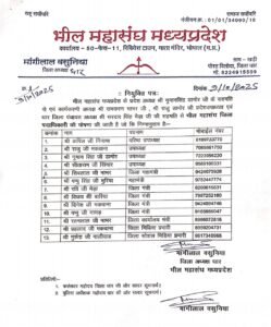 धार। मध्य प्रदेश भील महासंघ के प्रदेश अध्यक्ष गुमान सिंह डामोर कार्यकरणी अध्यक्ष रामकरण भाभर राजू डामोर प्रदेश उपाध्यक्ष जिला पंचायत अध्यक्ष सरदार सिंह मेढा जिला अध्यक्ष सरदार सिंह अनारे की सहमती से जिला भील महासंघ ग्रामीण पदाधिकारी एवं मांगीलाल जी वसुनिया जिला अध्यक्ष एवं समस्त कार्यकरणी की सहमति से निम्न पदाधिकारी की घोषणा की जाती है।