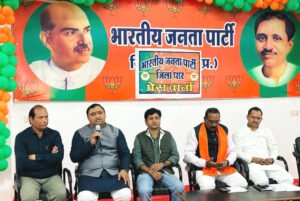 धार । भगवान बिरसा मुंडा के 150वें जन्मदिवस पर जनजातीय गौरव यात्रा को लेकर भाजपा कार्यालय में शनिवार को पत्रकार वार्ता आयोजित की गई जिसमें भाजपा जिलाध्यक्ष महंत निलेश भारती जिला पंचायत अध्यक्ष सरदार सिंह मेड़ा अभियान टोली संयोजक राकेश पटेल विधानसभा संयोजक मोहन पटेल भाजपा जिला मीडिया प्रभारी संजय शर्मा मौजूद रहे।