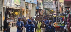फ्लैग मार्च का नेतृत्व थाना प्रभारी सविता चौधरी ने किया। इस दौरान भारी पुलिस बल के साथ शहर के प्रमुख मार्गों, बाजार क्षेत्रों, धार्मिक स्थलों एवं संवेदनशील इलाकों में पैदल मार्च कर स्थिति का जायजा लिया गया।