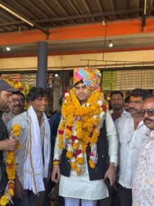 इसके पश्चात प्रशांत जाटवा श्रृंगेश्वर महादेव धाम पहुंचे, जहां उन्होंने भगवान भोलेनाथ के दर्शन कर पूजा-अर्चना की और वहां विराजमान महंत संतोषगिरी गुरुजी से आशीर्वाद प्राप्त किया। इस दौरान गुरुजी द्वारा उन्हें दुपट्टा पहनाकर एवं नारियल भेंट कर सम्मानित किया गया।