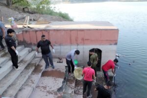 “जल गंगा संवर्धन अभियान-2026” के अन्तर्गत मंगलवार को नगरपालिका धार के सहयोग से नौगांव स्थित गणपति घाट की साफ सफाई व तालाब से गाद निकालने का कार्य किया गया। तालाब से 3 ट्राली गीला कचरा, पुजन सामाग्री, कपडे, नारियल, चुनरी,हार फुल माला निकाली गई।